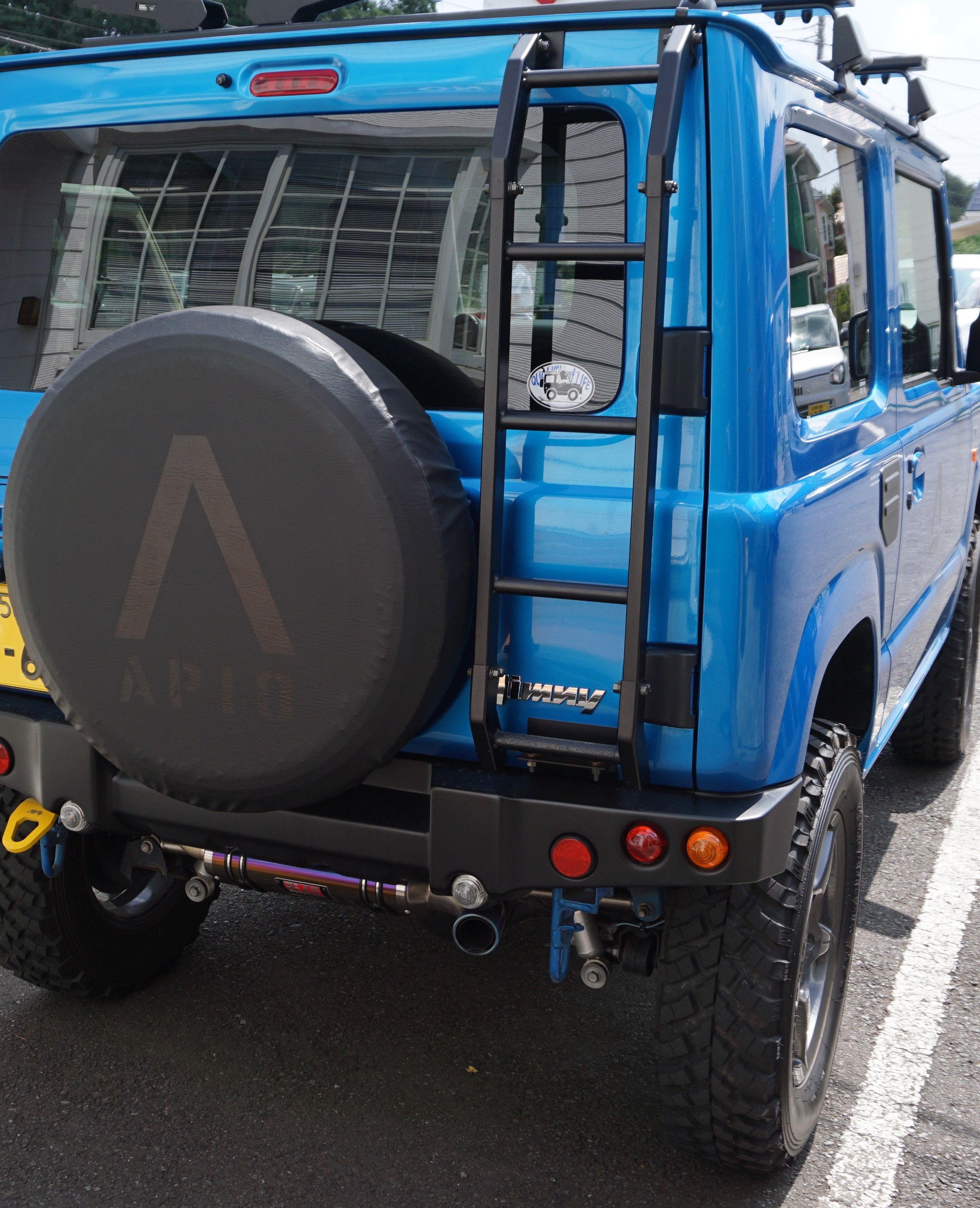 外装品のラインナップも多く、意匠権取得済の「スチールリアラダー」や、アピオ創業者の尾上茂会長がデザインとネーミングをした「しし狩りバンパー」は定番商品だ。また、車体下周りの各ガード類は、大自然の道なき道を進み冒険へと踏み出すジムニーを保護する、隠れた人気商品となっている。