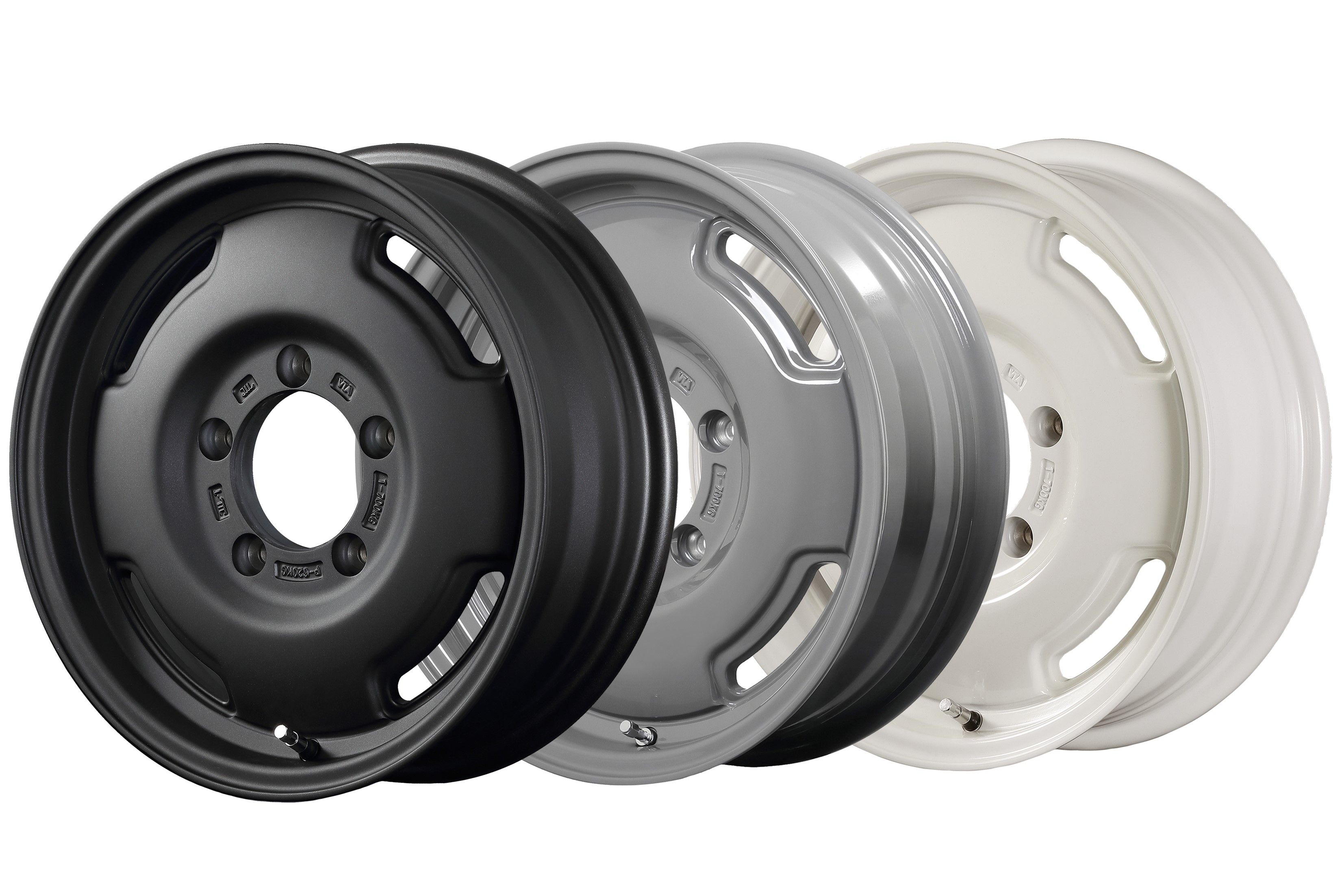 その中でも特にこだわりが強いのが、カスタマイズの1丁目1番地であるホイールだ。人気のワイルドボアシリーズは、LJやSJジムニーが装着していたスチールホイールをイメージしたアルミホイールの「SR」と、5本スポークがスタイリッシュな「X」の2種類を展開している。SRは、あえてシャープさを避け、鉄チンホイールっぽさを重視している。2017年に黒と白を発売し、19年夏に新色のアイアングレーを追加した。ボディーカラーによってクルマの個性を際立たせる仕上がりで、見た目の違いをアピールしている。