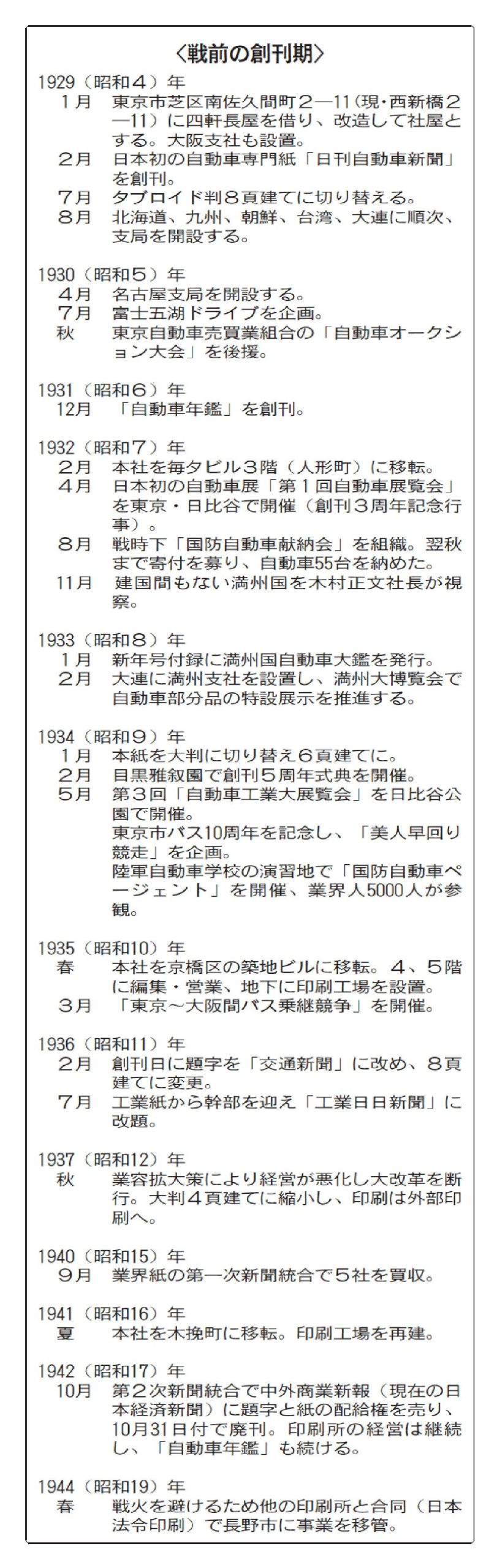 日刊自動車新聞は1929年2月、日本初の自動車専門新聞として創刊して以来、日本の自動車産業をその揺籃期から見つめてきた。新聞をはじめとした媒体の発行だけでなく、東京モーターショー(現ジャパンモビリティショー)の前身である「自動車展覧会」やラリー競技大会「日本アルペンラリー」といったイベントを開催し、日本のマイカー普及やモータースポーツの振興にも深く関わってきた。世界の自動車産業が激動期を迎えている今、業界の「道標」となるべく創刊した日刊自動車新聞の役割は、「雲中」ゆえに光明となることが求められている。