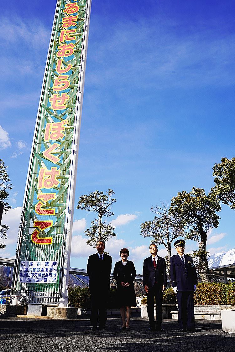 広島県の自動車関係4団体で組織する広島県自動車販売・整備団体交通安全対策推進協議会(藤井一裕会長)は、交通安全に役立ててほしいと2025年の広島県交通安全年間スローガン懸垂幕を広島県運転免許センター(広島市佐伯区)に掲出した。 25年のス...