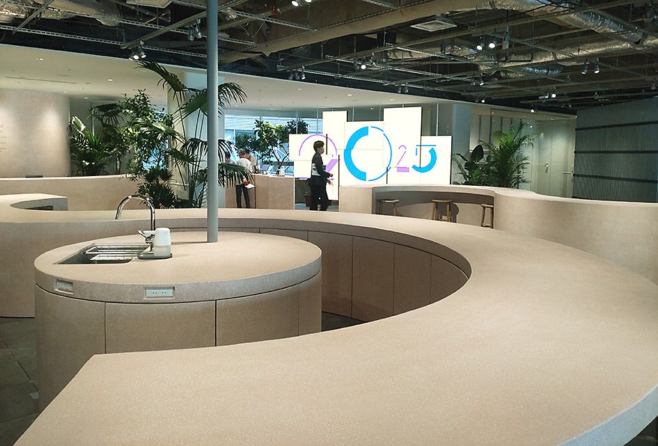 同エリアは、延床面約2500平方メートルで、事前予約制とした。武田聡常務執行役は「製品を中心に置きつつ、顧客中心で共創していく」とし、代表的なデータ利活用の取り組みとして、交通事業者と連携したエネルギー最適化や、製造現場の自動化を紹介した。