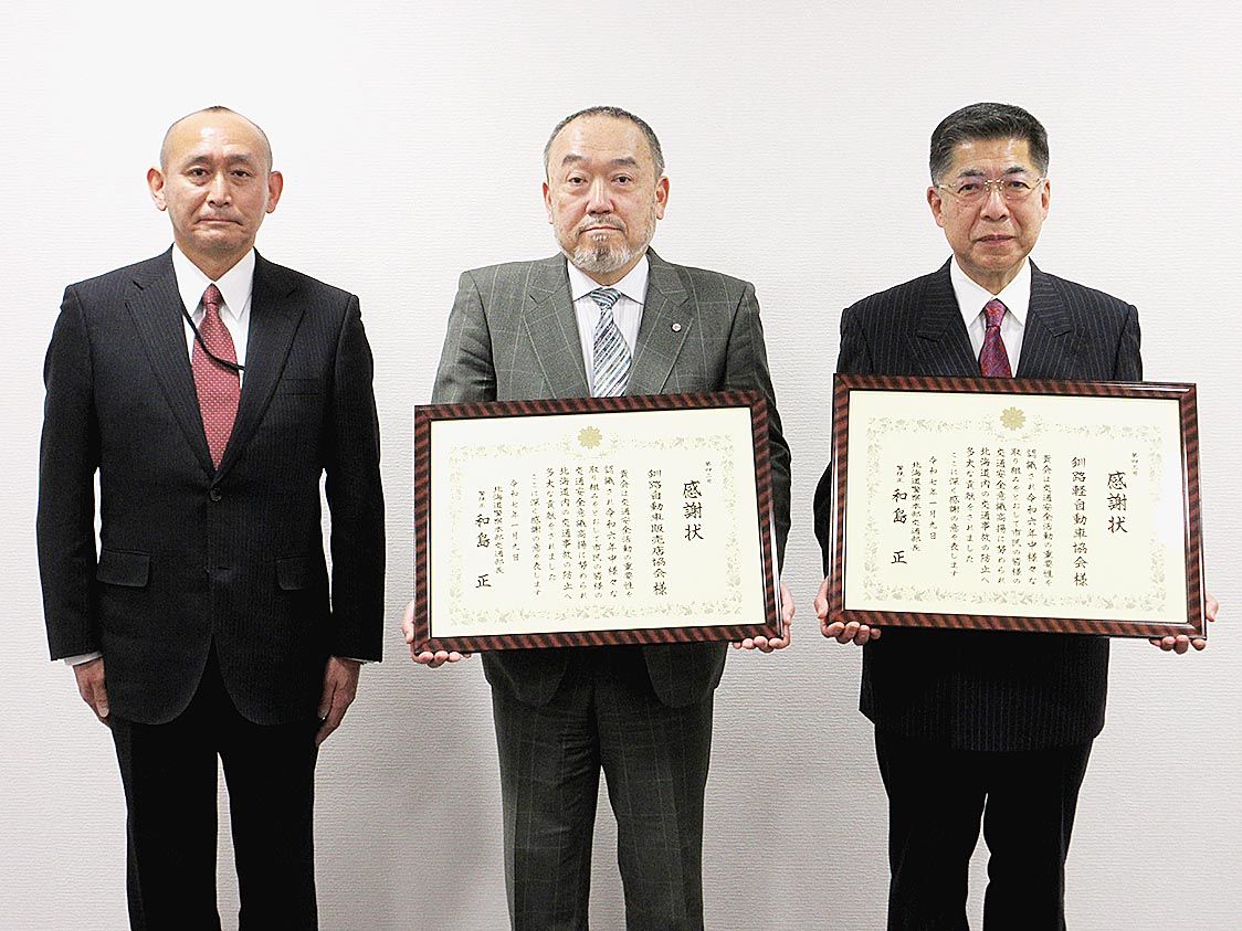 【釧路】釧路自動車販売店協会(坂根篤会長)と釧路軽自動車協会(青木健次会長)は、サポカー体験会など高齢者向け交通事故防止活動に対して、北海道警察から感謝状が贈られた。 2022年に道警釧路方面本部と両協会が「高齢者等の交通事故防止の取組に...