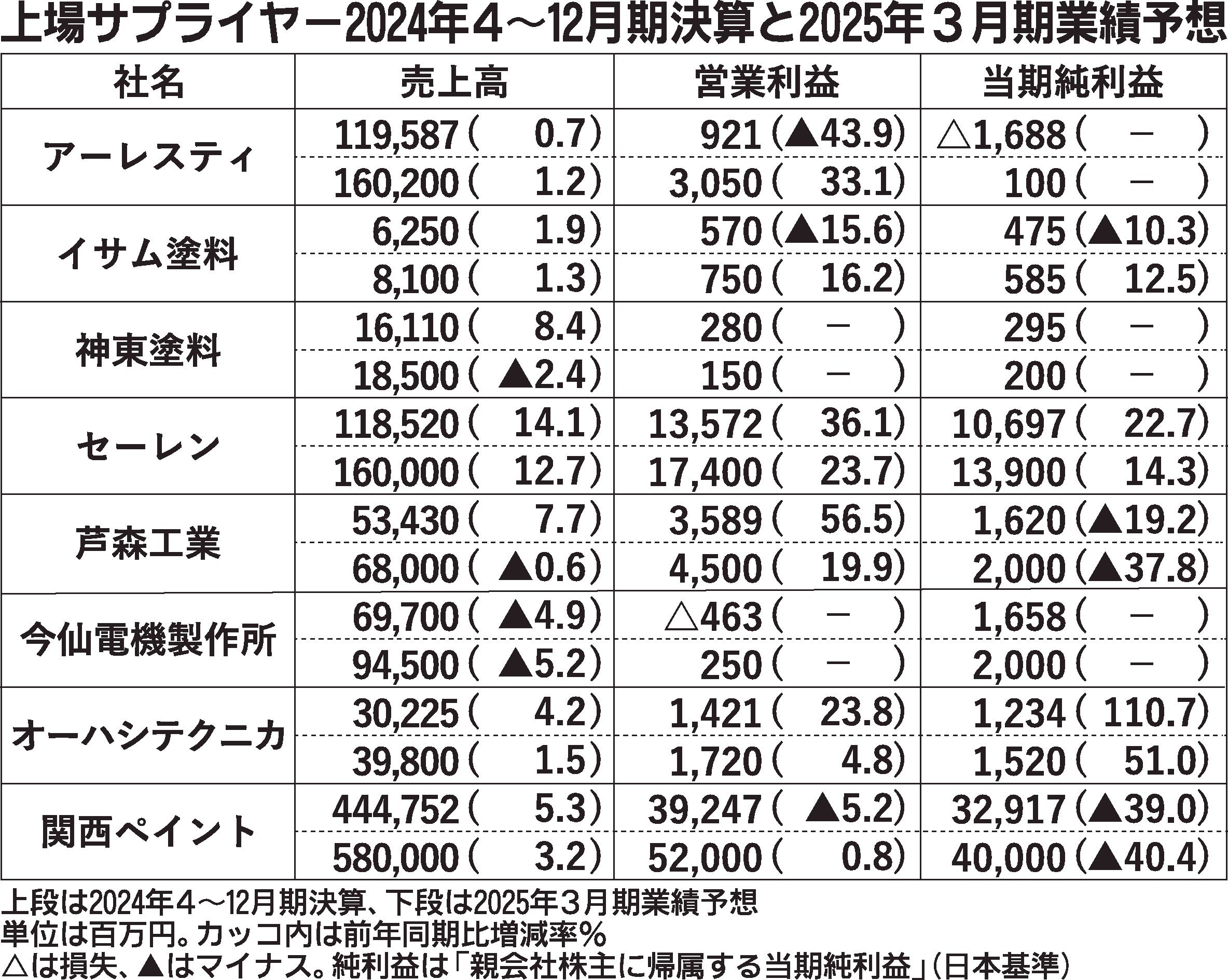 〈上場サプライヤー2024年4~12月期決算と2025年3月期業績予想〉(2/6付)