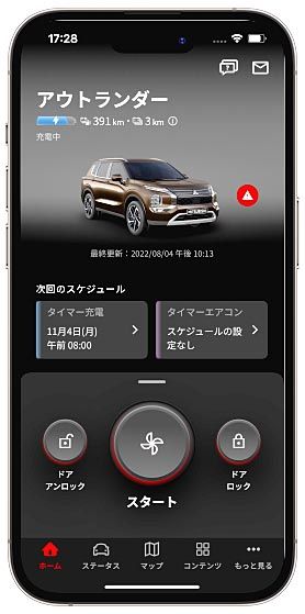三菱自動車とKDDIはユーザー向けのスマートフォンアプリ「ミツビシモーターズ」を共同開発し、17日から提供を始めたと発表した。「アウトランダーPHEV」など車載通信機能搭載車を対象に、エアコン操作のほか、不正解錠の通知、ライト点灯状態の確認などができる。