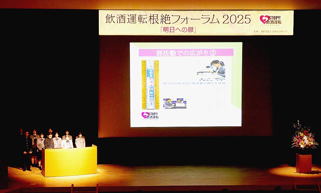 NPO法人はぁとスペース(山本美也子理事長)は、粕屋町で「飲酒運転根絶フォーラム2025」を開催した。当日は、行政や警察、同法人の活動に協力する企業の関係者ら約500人が参加した。同町内で2011年2月に、高校生2人が飲酒運転による交通事...