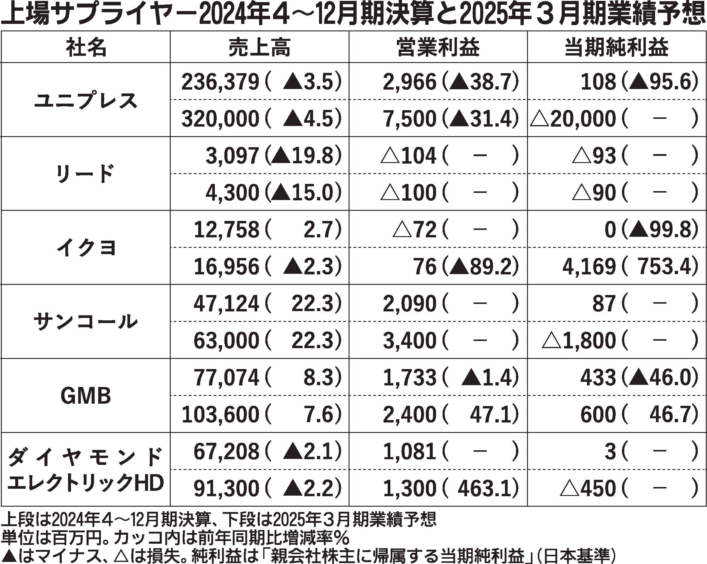 〈上場サプライヤー2024年4~12月期決算と2025年3月期業績予想〉(2/25付)