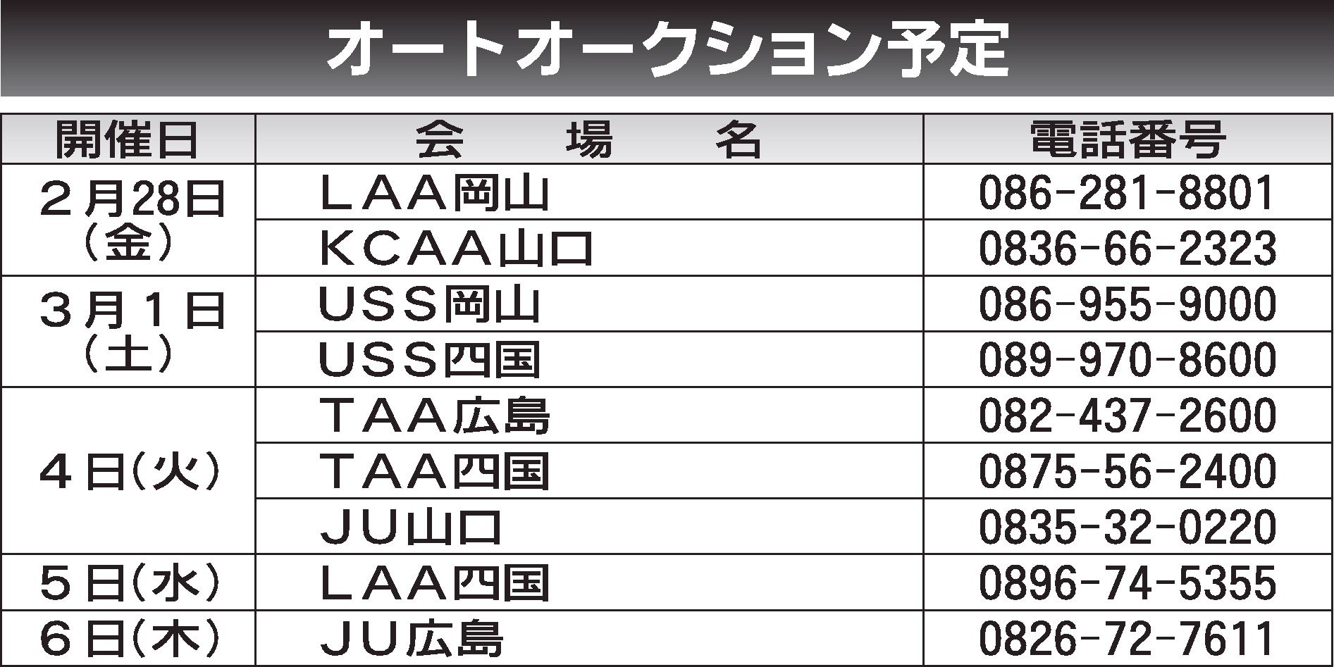 〈オートオークション予定〉中四国地区 2025/2/28~3/6