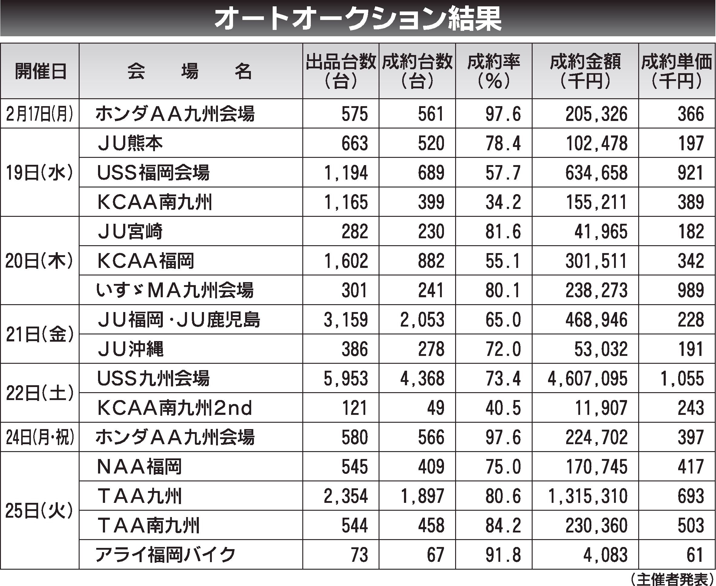 〈オートオークション結果〉九州地区 2025/2/17~25