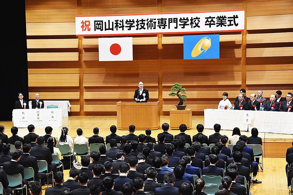 【岡山】岡山科学技術専門学校(大月秀之校長)は、岡山市内で「令和6年度卒業式」を開催した。2級自動車工学科、1級自動車工学研究科、国際自動車工学科の自動車関連学科の学生56人を含む全13学科の237人が社会へ巣立った。 卒業式は17日に開...
