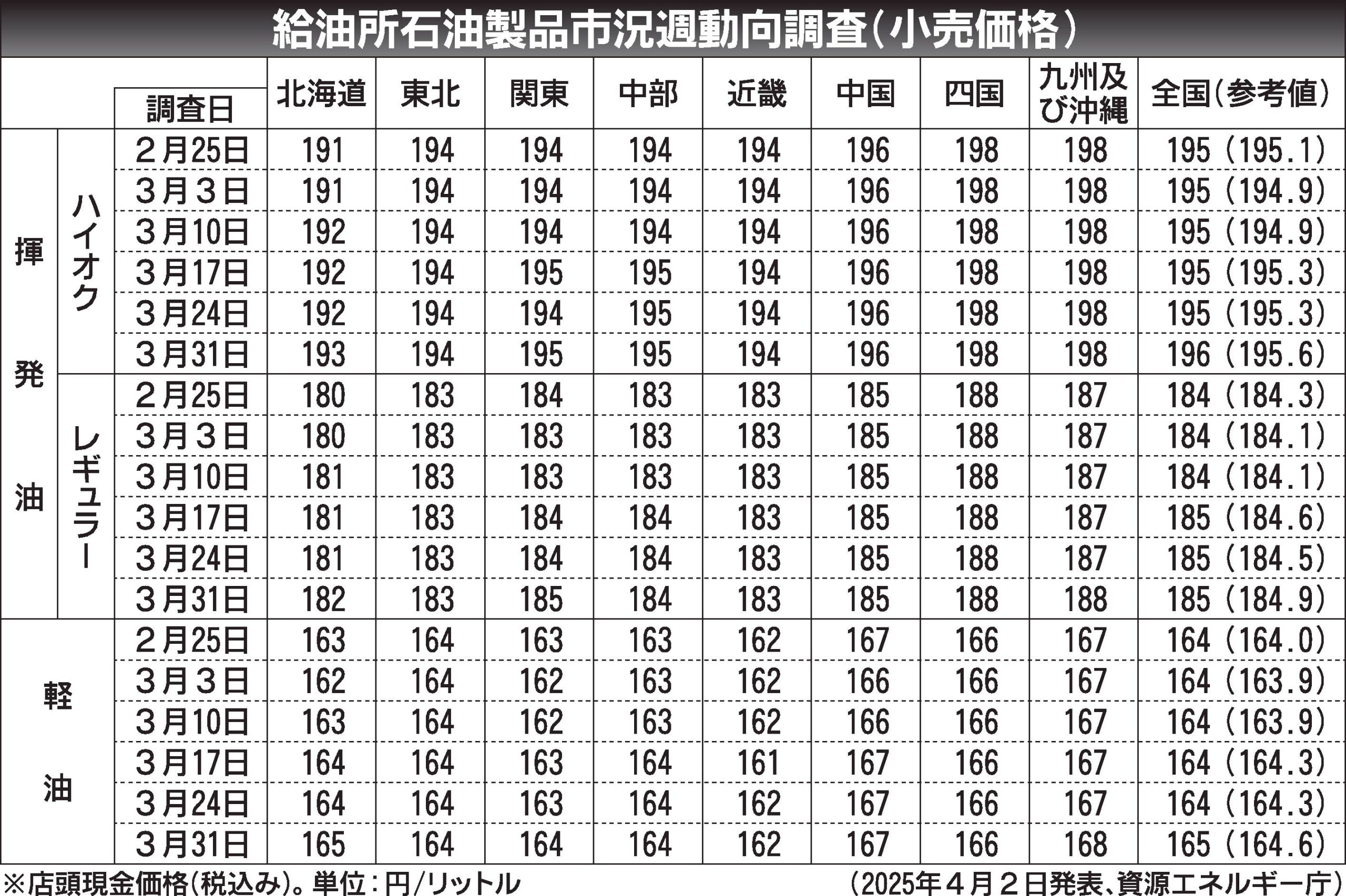 〈給油所石油製品市況週動向調査(小売価格)〉2025/2/25~3/31