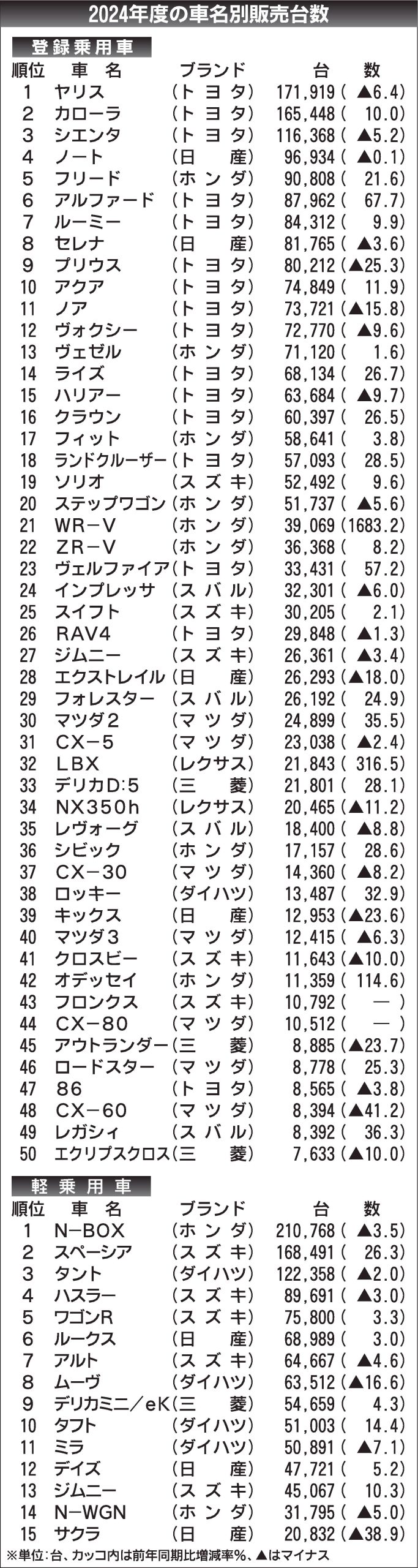 〈2024年度の車名別販売台数〉