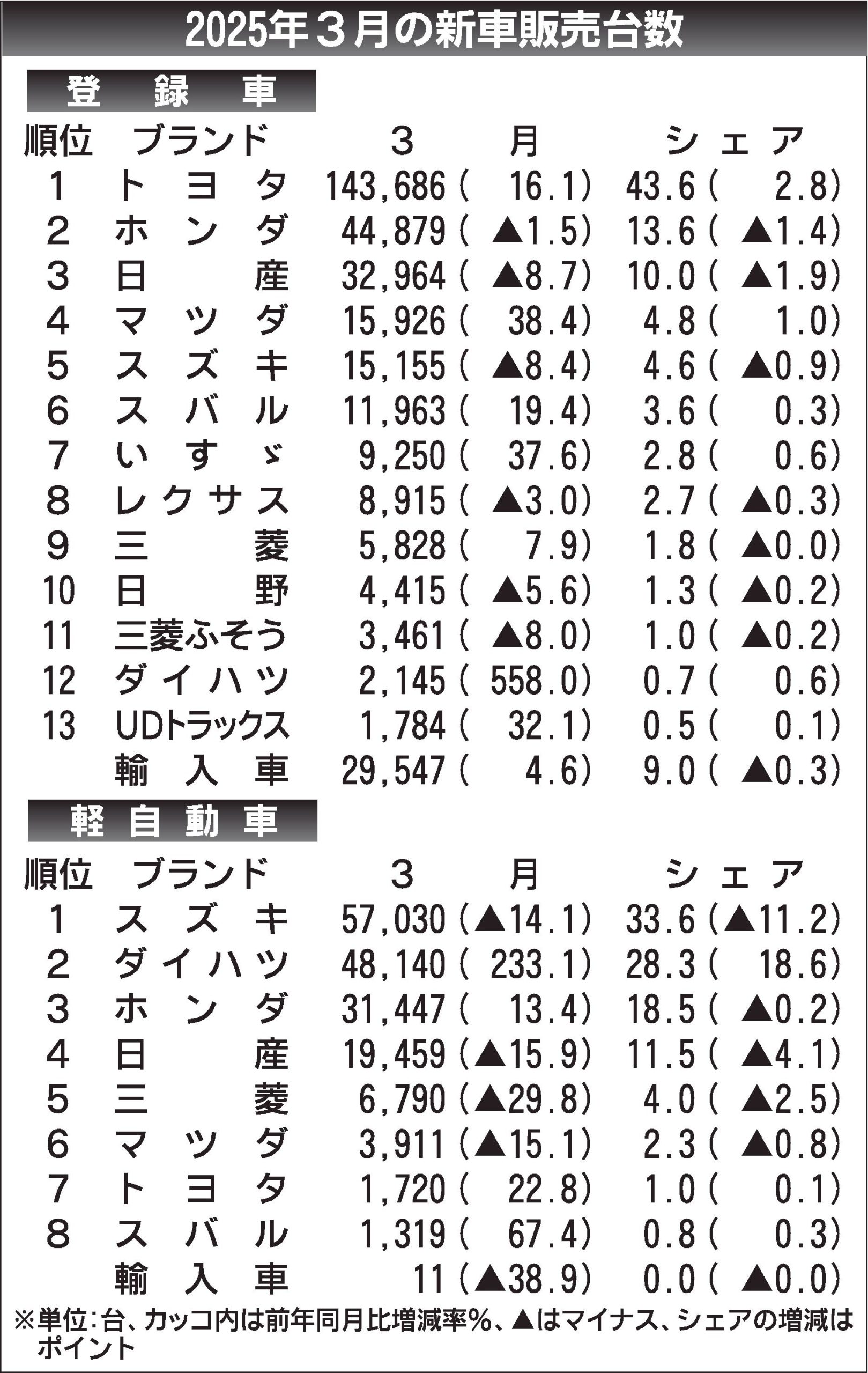 〈2025年3月の新車販売台数〉