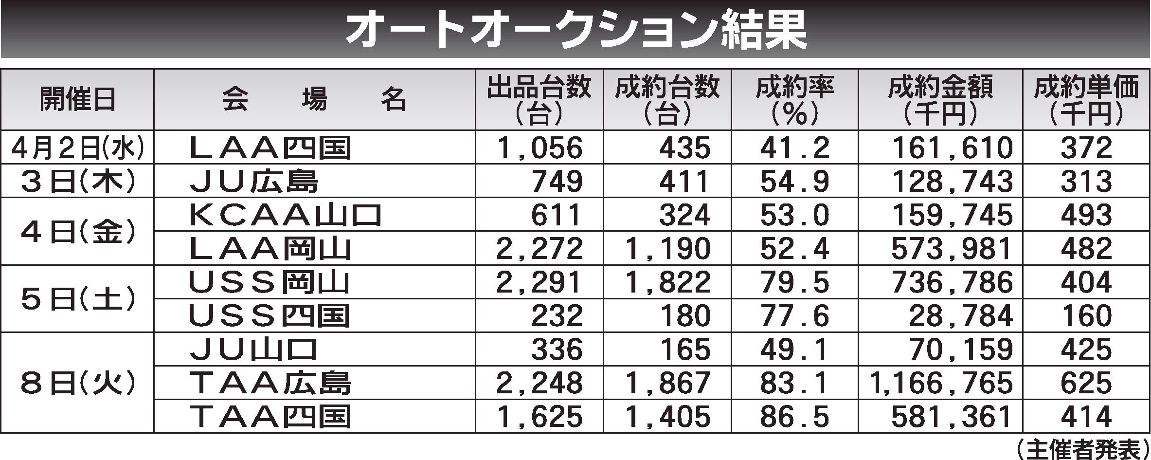 〈オートオークション結果〉 中四国地区 2025/4/2~8