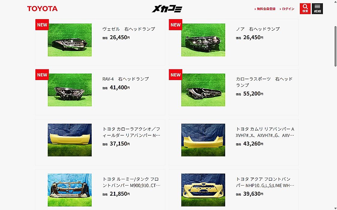 トヨタ自動車は、中古の整備機器や工具の買い取り・販売サービス「メカコミ」で、流通過程で傷付くなどした補修部品の取り扱いを開始した。機能に問題はないものの、見た目も重要視される外装部品などでは販売が難しくなるため、これまで廃棄されていたケー...