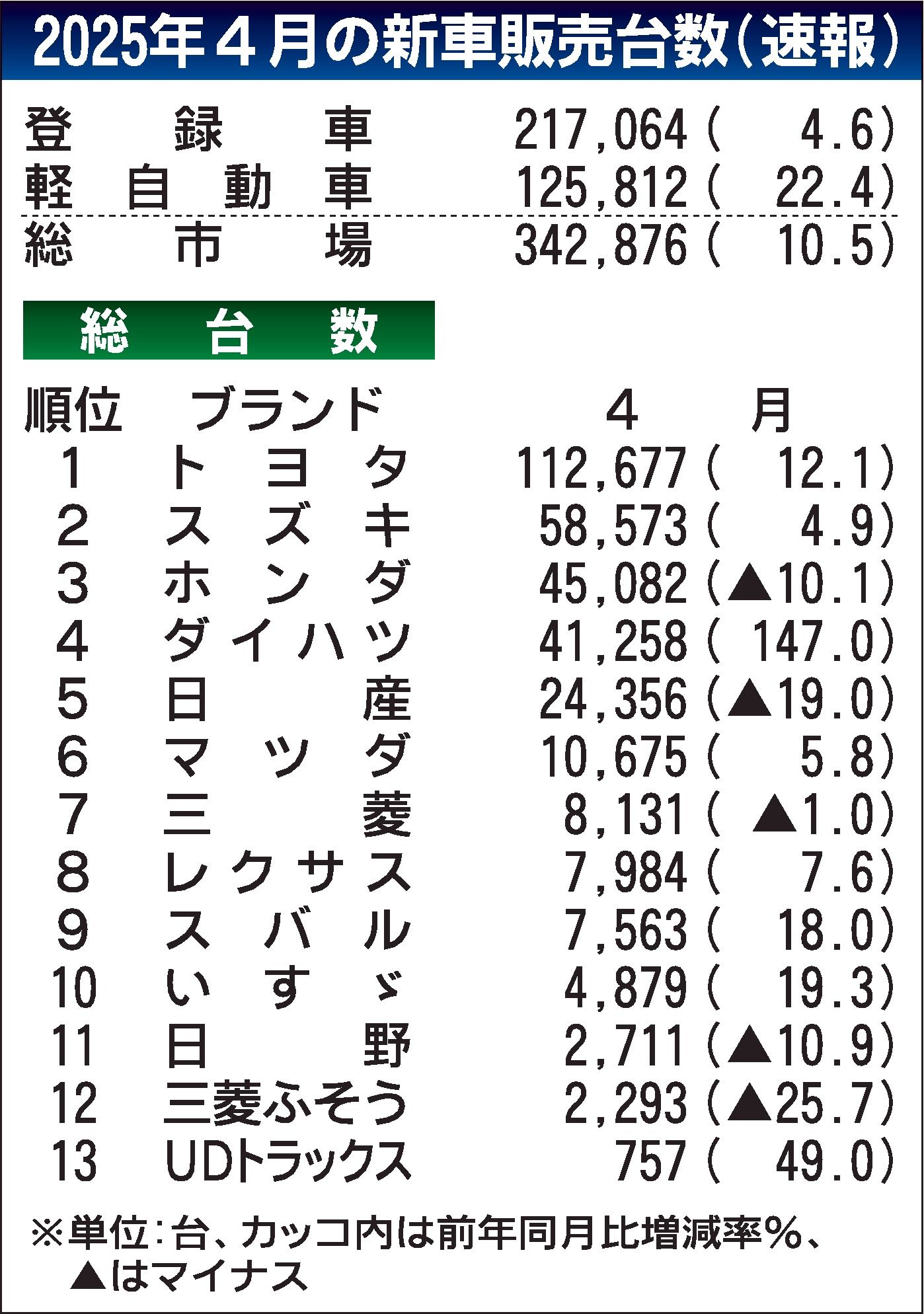 〈2025年4月の新車販売台数(速報)〉