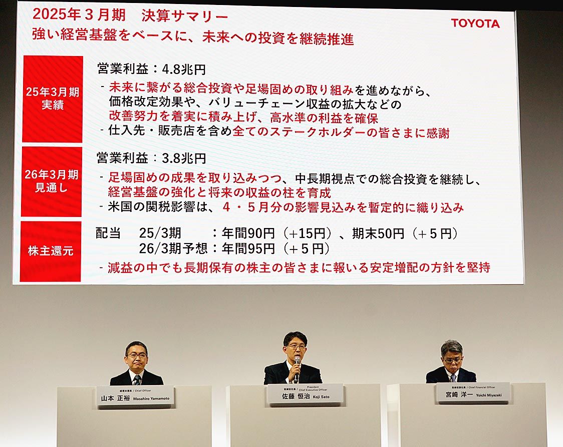 トヨタ自動車は8日、2026年3月期の営業収益(売上高)が過去最高を更新する一方、営業利益は2割、当期純利益は3割の減少になるとの見通しを公表した。ハイブリッド車(HV)を中心に電動車の販売増を見込むが、円高や〝トランプ関税〟が利益を押し...
