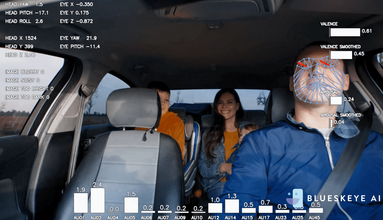 注目製品のひとつは、BLUESKEYE AI 社(英)による感情認識AIソフトウェア「B-Automotive」である。RGB/NIRカメラに対応しており、表情の微細な変化をリアルタイムで解析し、ドライバーや乗員の精神状態を把握。DMS・OMS(ドライバー・乗員モニタリングシステム)への応用により、快適かつ安全な車内環境の実現を支援する。
