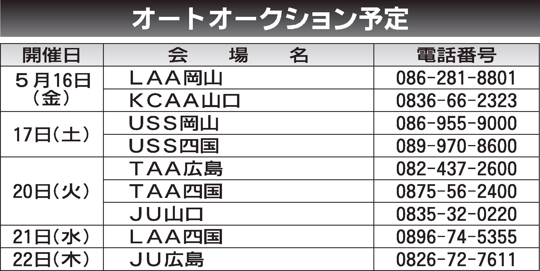 〈オートオークション予定〉中四国地区 2025/5/16~22