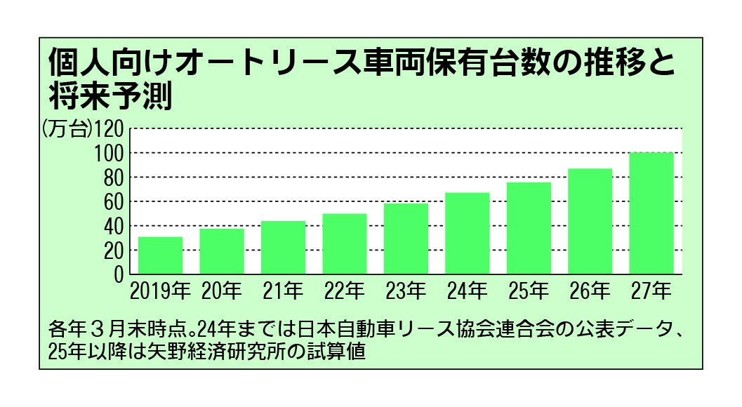 個人向け自動車リースの市場予測、2026年度に保有台数が100万台突破 矢野経済調査