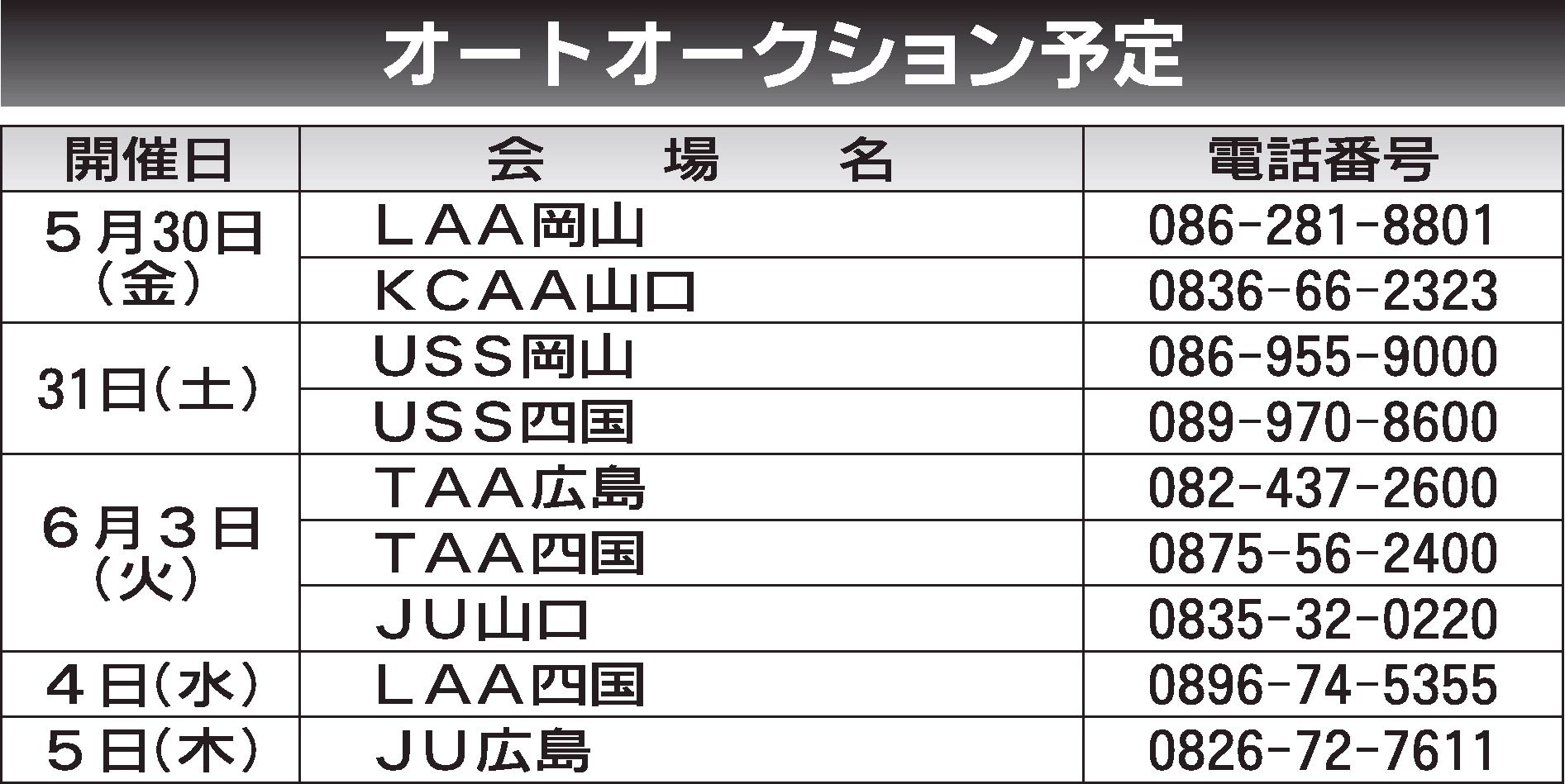 〈オートークション予定〉中四国地区 2025/5/30~6/5