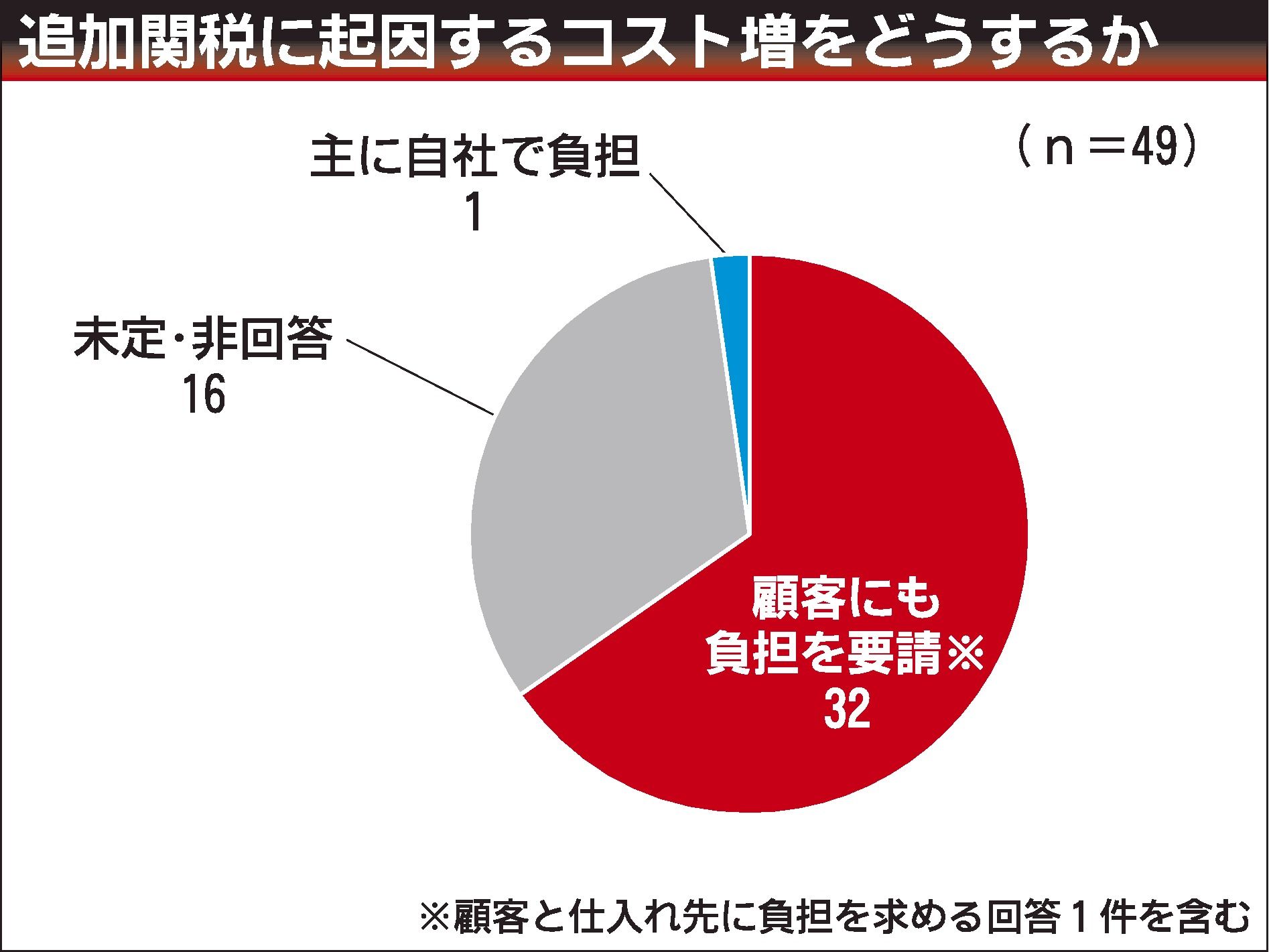 〝トランプ関税〟による追加コストや新車需要の減速に自動車部品メーカーが懸念を深めている。日刊自動車新聞の緊急アンケートによると、回答企業の83.6%が事業に「直接的な影響が及ぶ」と回答した。税率上昇に伴う追加コストについては、65.3%が...