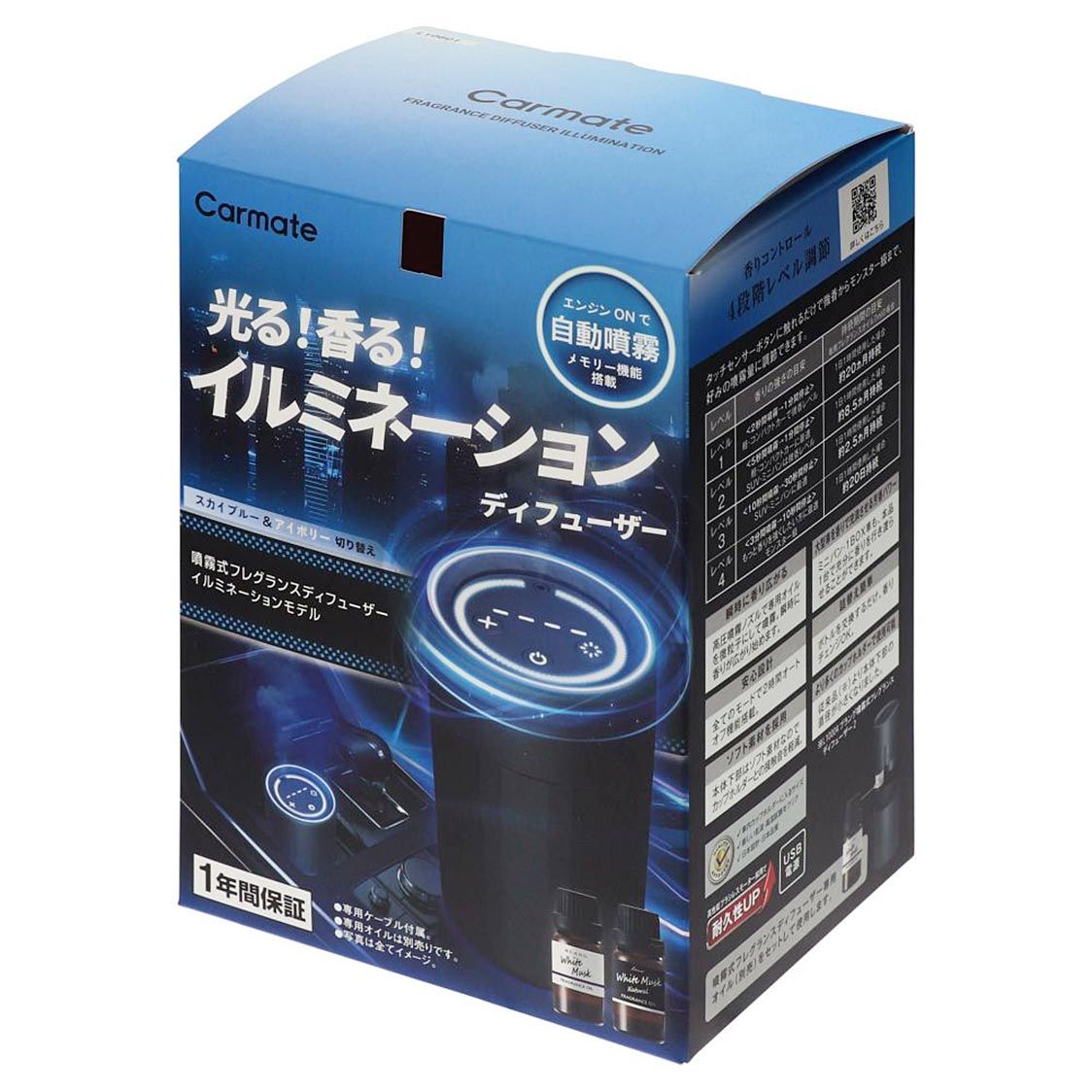 カーメイトは、「噴霧式フレグランスディフューザー」シリーズに天面が3パターンで光るイルミネーションモデル「イルミブラック」を追加した。天面のふちに細いラインと、異なる大きさのドットを配置して近未来感を演出。エンジンをかけると自動でイルミネーションが点灯し、専用フレグランスオイルが噴霧される。