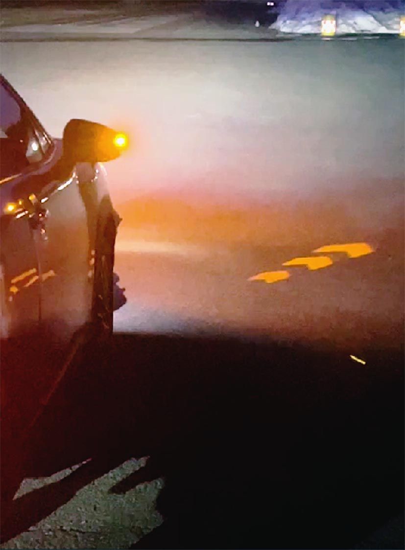 シグナルロードプロジェクションは、方向指示灯(ウインカー)の点灯に合わせて、路面にV字型のサインを投影する。これにより歩行者や周辺車両のドライバーに対して早期に自車の存在や動きを知らせる仕組みだ。