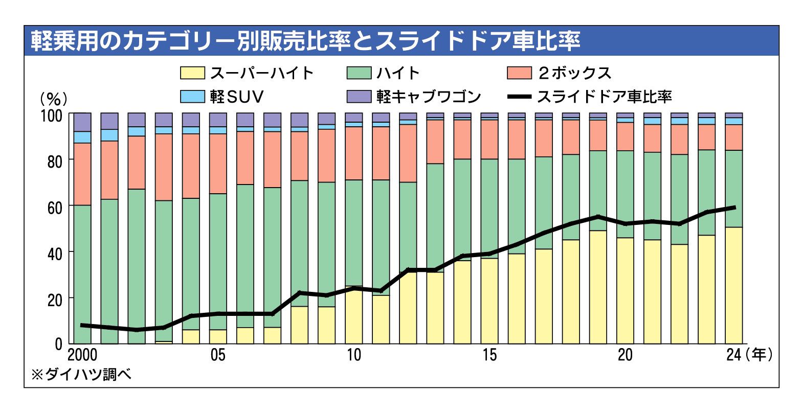 ダイハツ工業が5日発売した新型「ムーヴ」に設定したスライドドアは、今や軽乗用車の6割に搭載される〝必須級〟の装備だ。「タント」などに代表されるスーパーハイト系ワゴンの市場拡大に比例し、搭載率を高めてきた。ダイハツは、かつて軽市場の主流だっ...