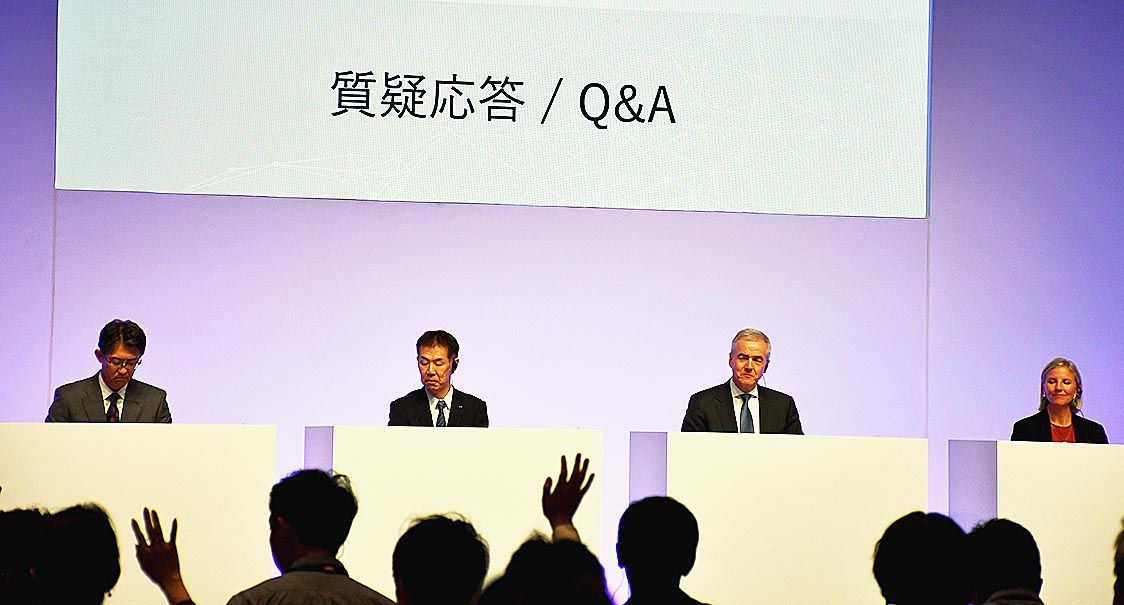 日野自動車と三菱ふそうトラック・バスは10日、経営統合の最終合意を結んだことを受け、トヨタ自動車、ダイムラートラックとともに大手町三井ホール (東京都千代田区)で会見した。登壇者は統合会社のCEO(最高経営責任者)に就く三菱ふそうのカール...