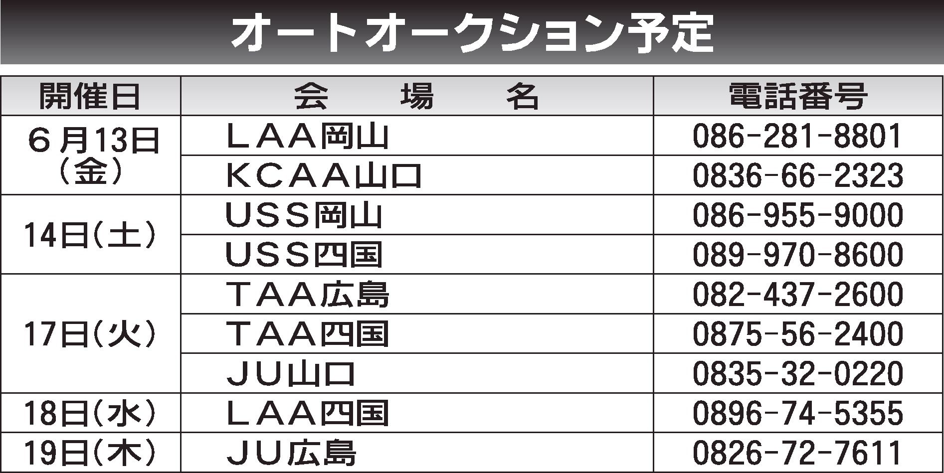 〈オートオークション予定〉中四国地区 2025/6/13~19