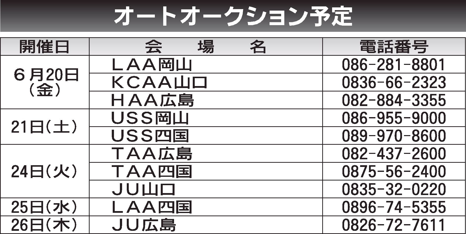 〈オートオークション予定〉近畿地区 2025/6/20~26