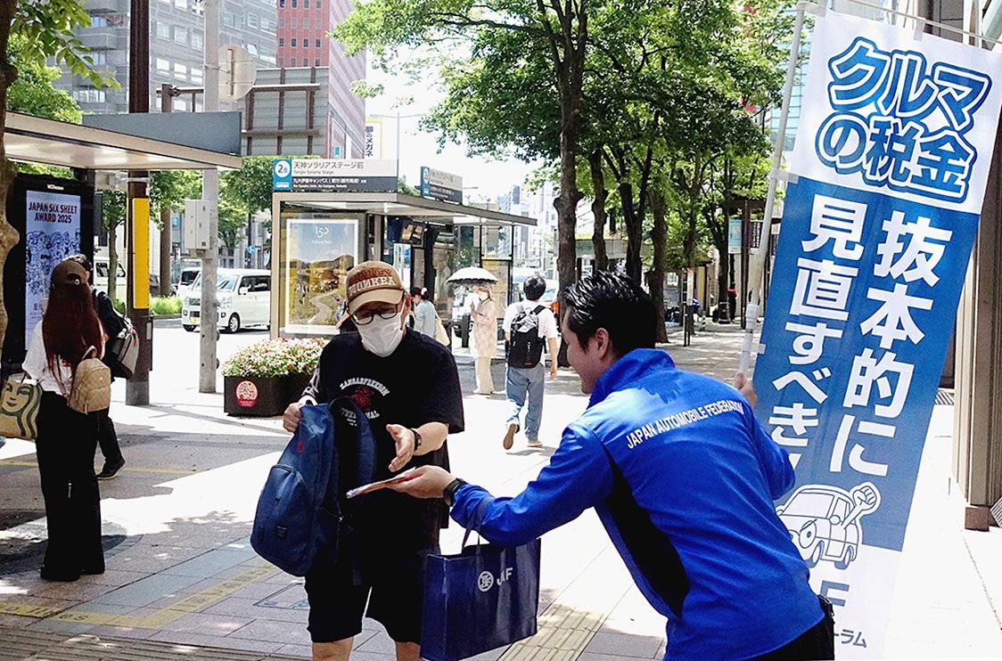 日本自動車連盟(JAF)福岡支部(佐竹伸一支部長)は福岡市中央区の商業エリアで、福岡県内の自動車関連団体と連携し、自動車税制改正に関する街頭活動を実施した。自動車関係諸税の見直しに向けた機運が高まる中、例年秋に行っている街頭活動に加えて、...