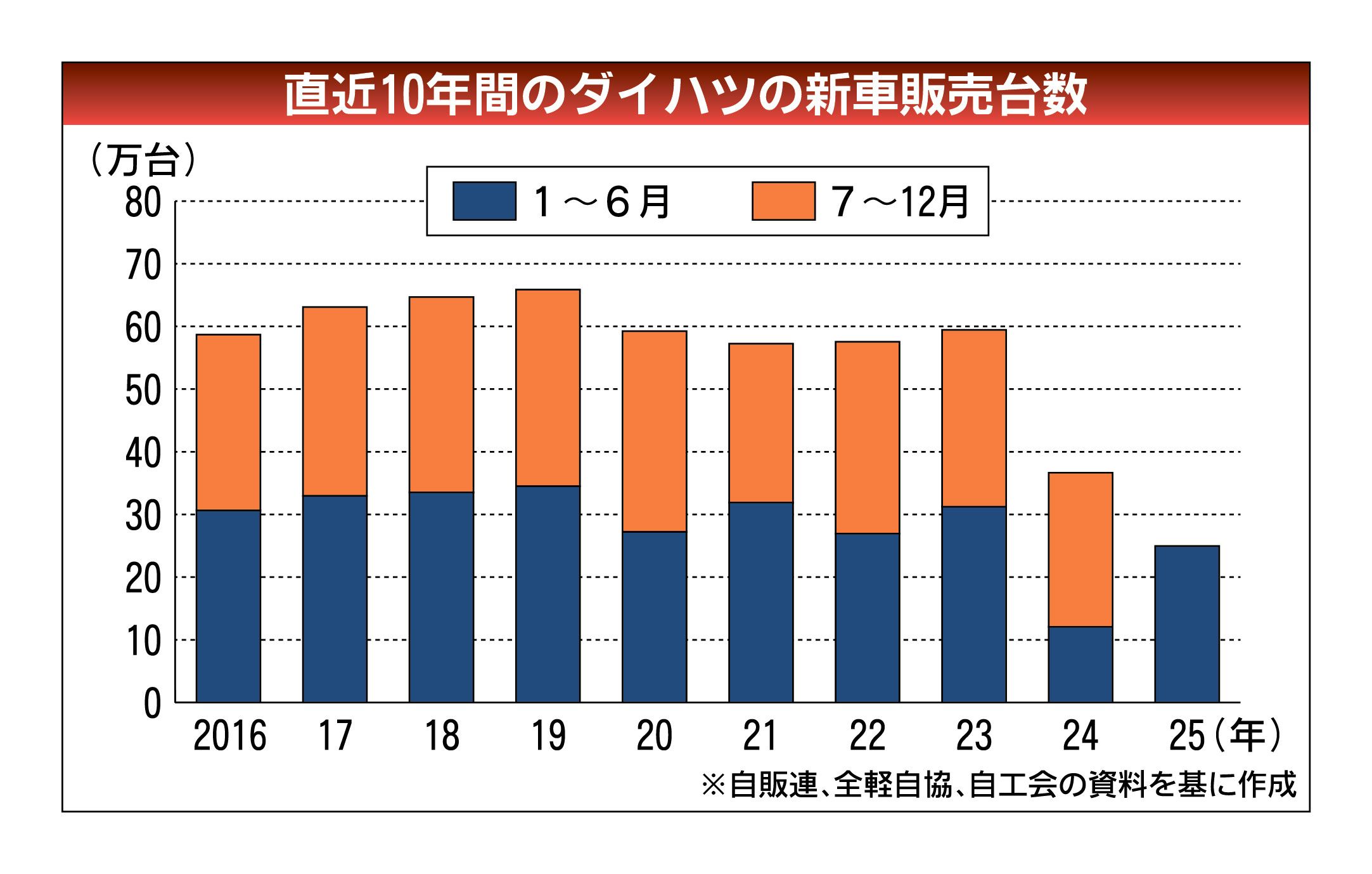 ダイハツ工業の国内販売がかつての勢いを取り戻すまで、あと一歩のところにきた。日本自動車販売協会連合会(自販連、加藤敏彦会長)と全国軽自動車協会連合会(全軽自協、赤間俊一会長)が1日発表した2025年上期(1~6月)の新車販売台数(軽自動車...