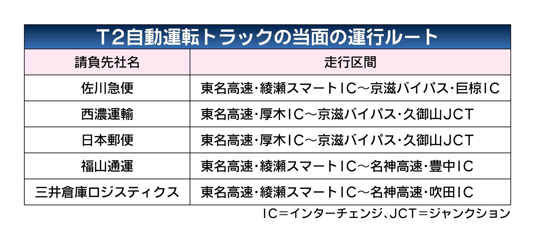商用車の自動運転技術を手掛けるT2(森本成城CEO、東京都千代田区)は1日、自動運転トラックによる商用運行を始めたと発表した。まずは「レベル2」(高度な運転支援)トラックを用い、関東から関西間で輸送事業者5社から請け負った荷物を運ぶ。将来...