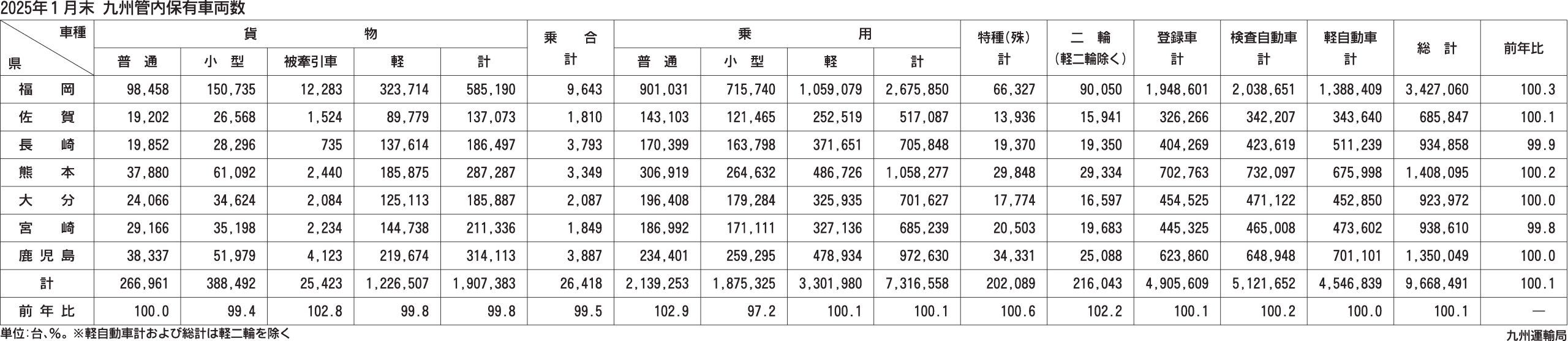 〈2025年1月末 九州管内保有車両数〉