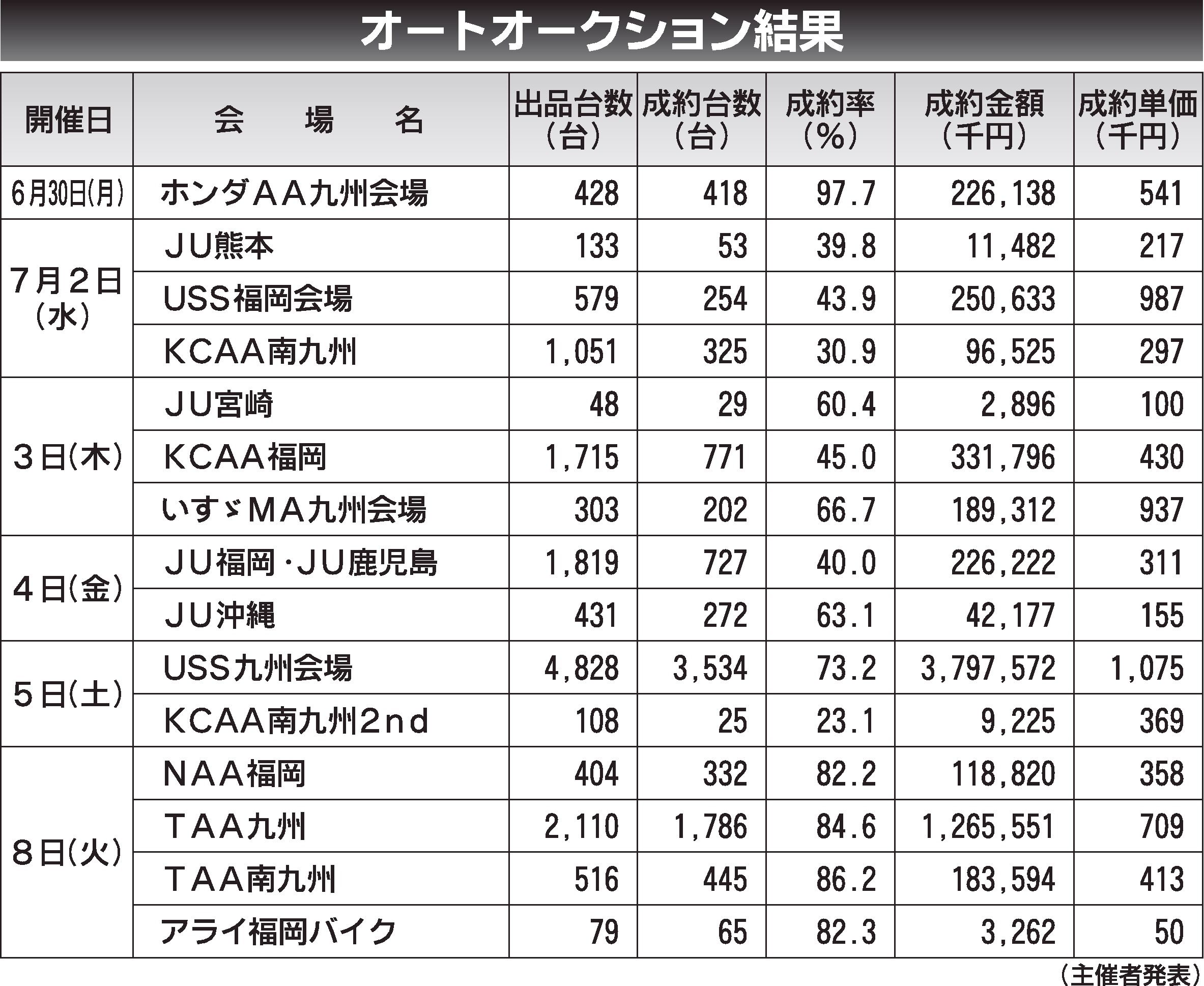 〈オートオークション結果〉九州地区 2025/6/30~7/8