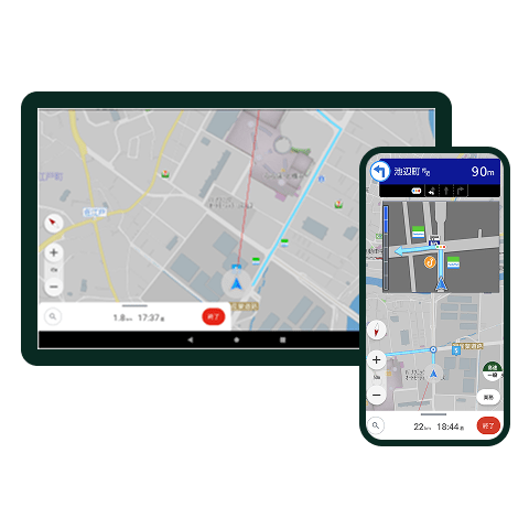 法人や業務用途向けに開発されたナビゲーションアプリ。「ストラーダ」に由来する高精度なルート検索と案内機能に加え、住所のない地点でもピンポイントで登録できる機能を備える。特に、営業や保守点検といった業務で高い利便性を発揮する。また、オフライン環境下でも使用できるため、山間部や災害時など通信が不安定になりやすい現場でも、安定したナビゲーション機能を提供する。