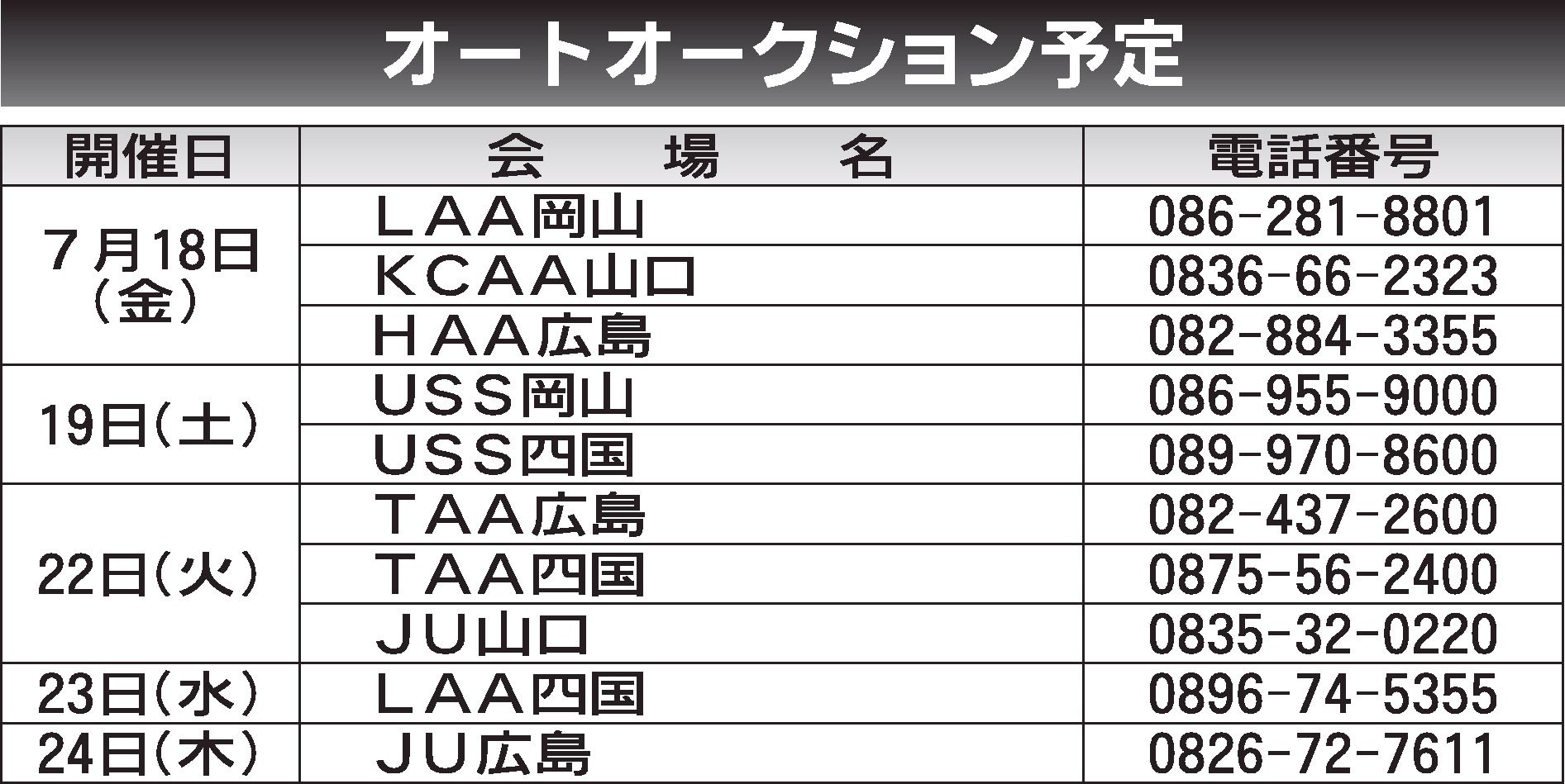 〈オートオークション予定〉中四国地区 2025/7/18~24