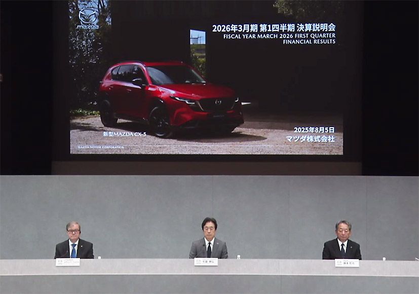 マツダは8月5日、2025年4~6月期決算は米国の追加関税や為替の影響により、営業損益が461億円、純損益が421億円の赤字だったと発表した。追加関税などの影響が不透明として公表を見送っていた26年3月期の通期見通しも発表し、純利益は前期比82.5%減の200億円、売上高は同2.4%減の4兆9000億円とした。