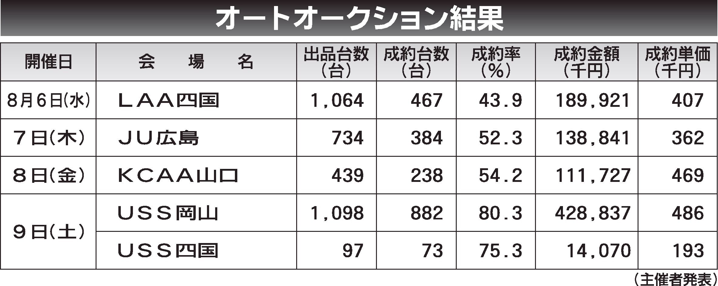 〈オートオークション結果〉中・四国地区 2025/12/10~16