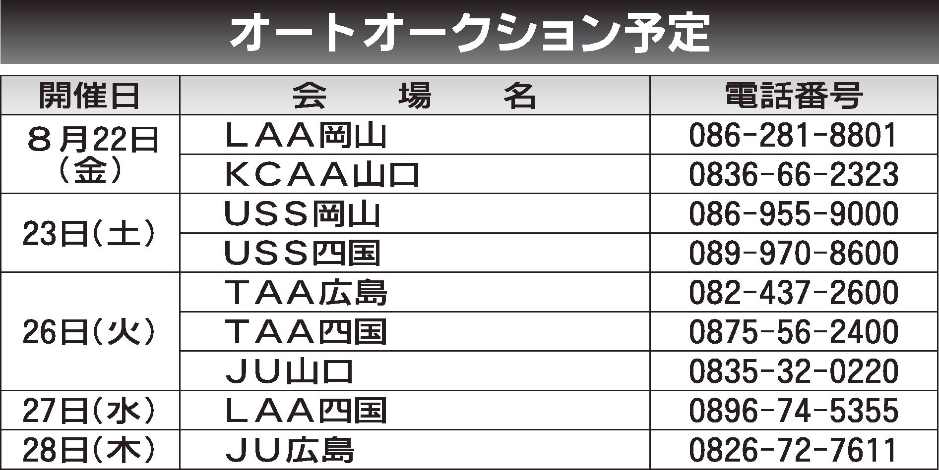 〈オートオークション予定〉中・四国地区 2025/8/22~28