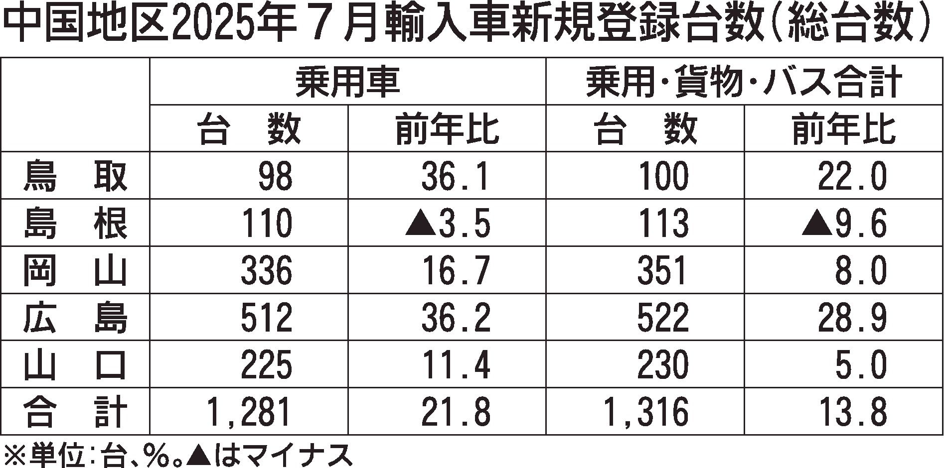日本自動車輸入組合(JAIA)の発表によると、7月の中国地区の輸入車新規登録台数(外国メーカー車と日本メーカー車)は、前年同月比13.8%増の1316台で7カ月連続で増加した。島根県を除く4県が前年を上回り、外国メーカー車、日本メーカーの...