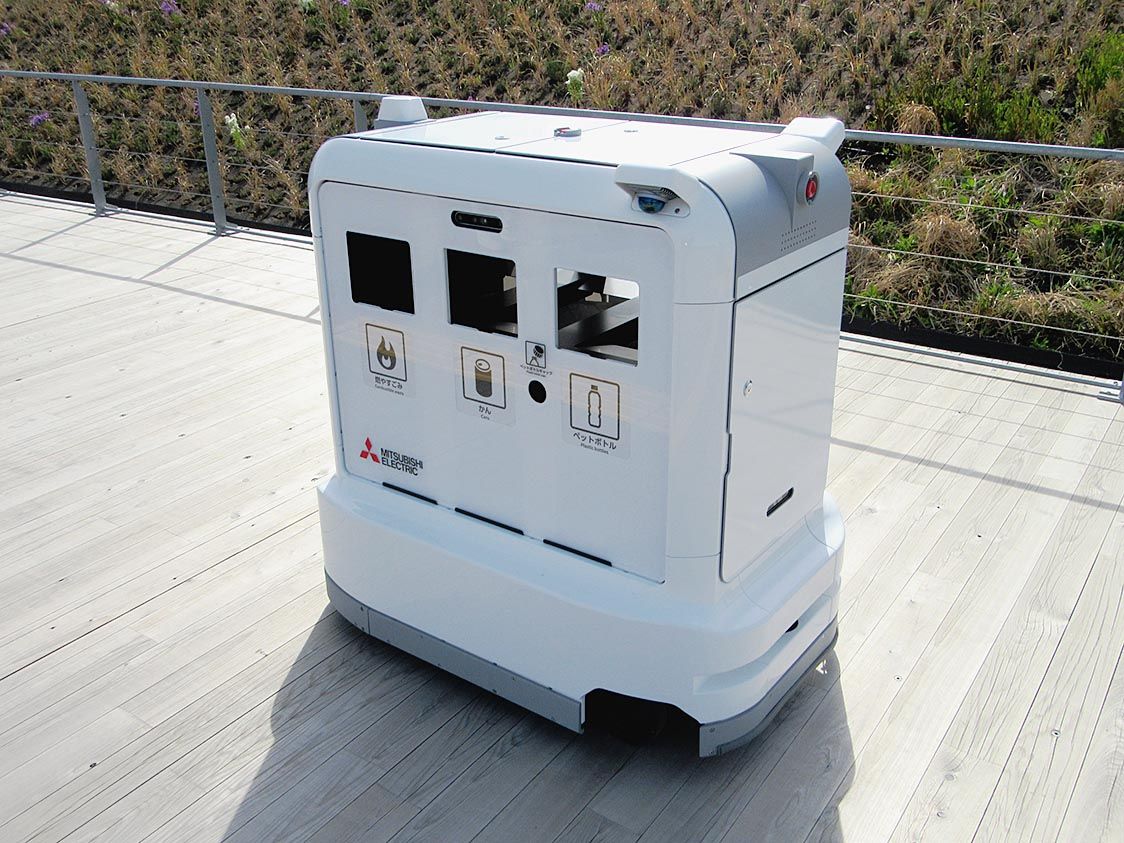 連載「きたで万博」(13)社会課題解決に向けて 三菱電機の技術結集 ごみ箱が歩いてくる⁉
