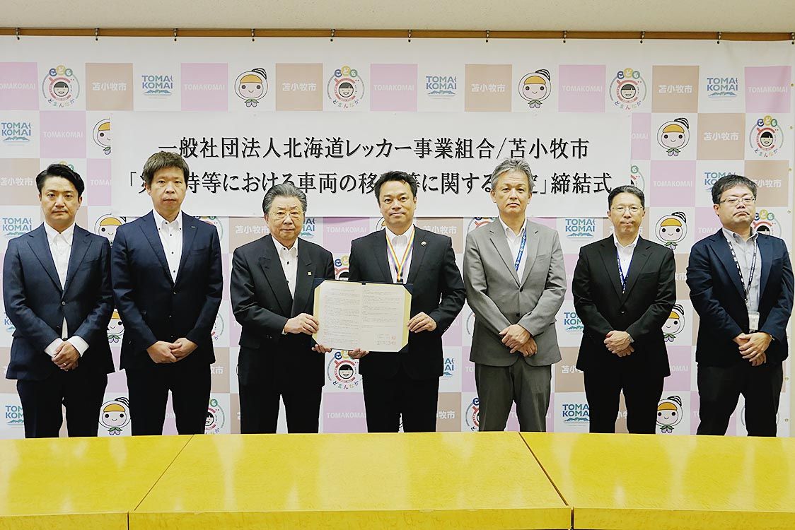 北海道レッカー事業組合(佐藤正良理事長)は、「災害時等における車両の移動等に関する協定」を苫小牧市と締結した。自治体との協定締結は今回が11例目。苫小牧市がロードサービスなどを行う企業や団体と協定を締結するのは初めて。自然災害や大規模事故...