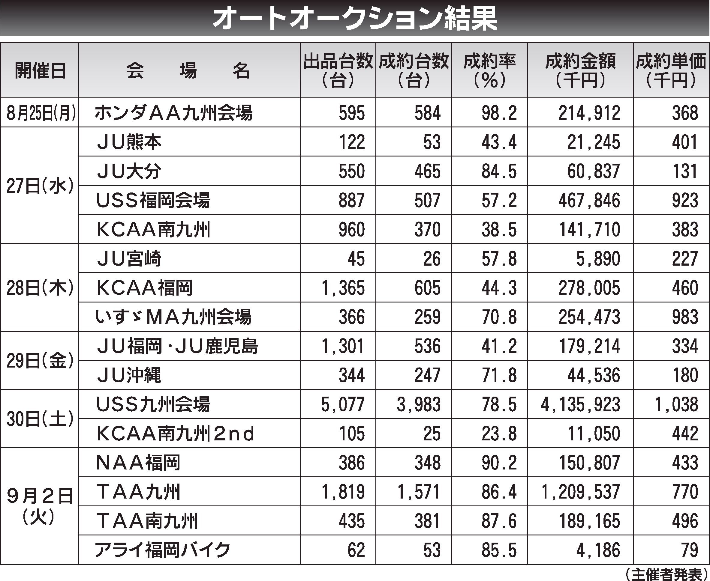 〈オートオークション結果〉九州地区 2025/8/25~9/2