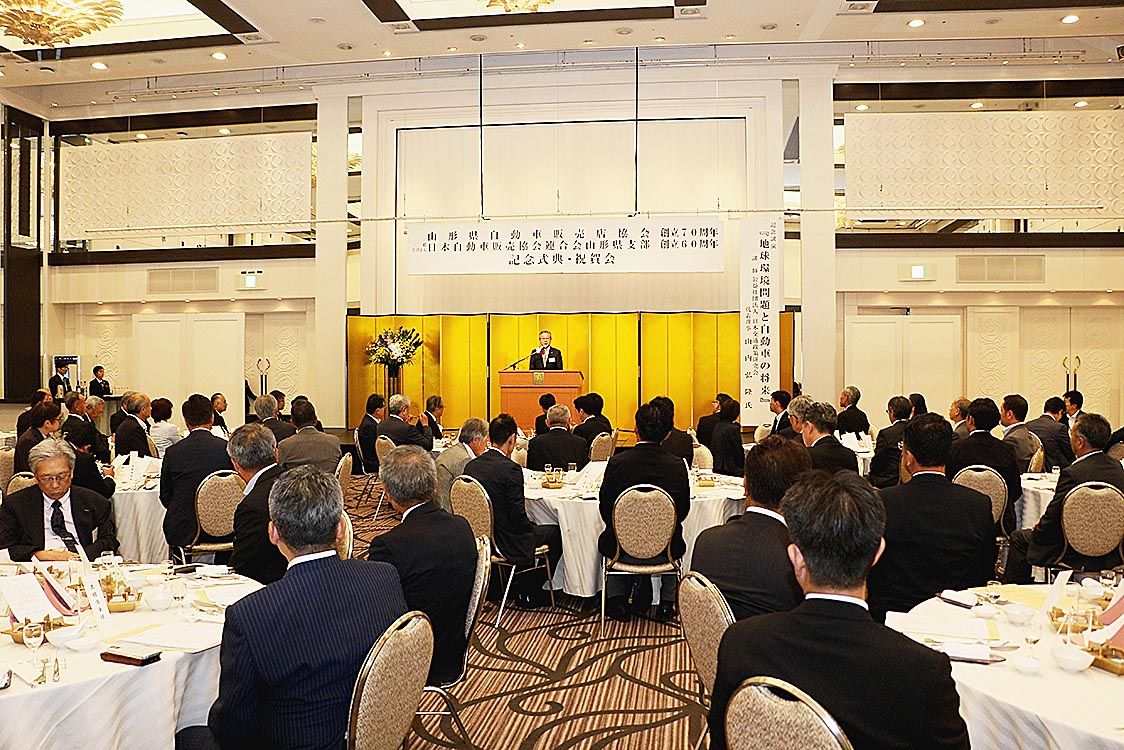 【山形】山形県自動車販売店協会(髙橋修会長)と日本自動車販売協会連合会(自販連)山形県支部(同支部長)は、山形市内で創立70周年・60周年の記念式典と祝賀会を開催した。髙橋会長・支部長と会員、来賓、関係者ら合わせて90人が参集。両団体の節...