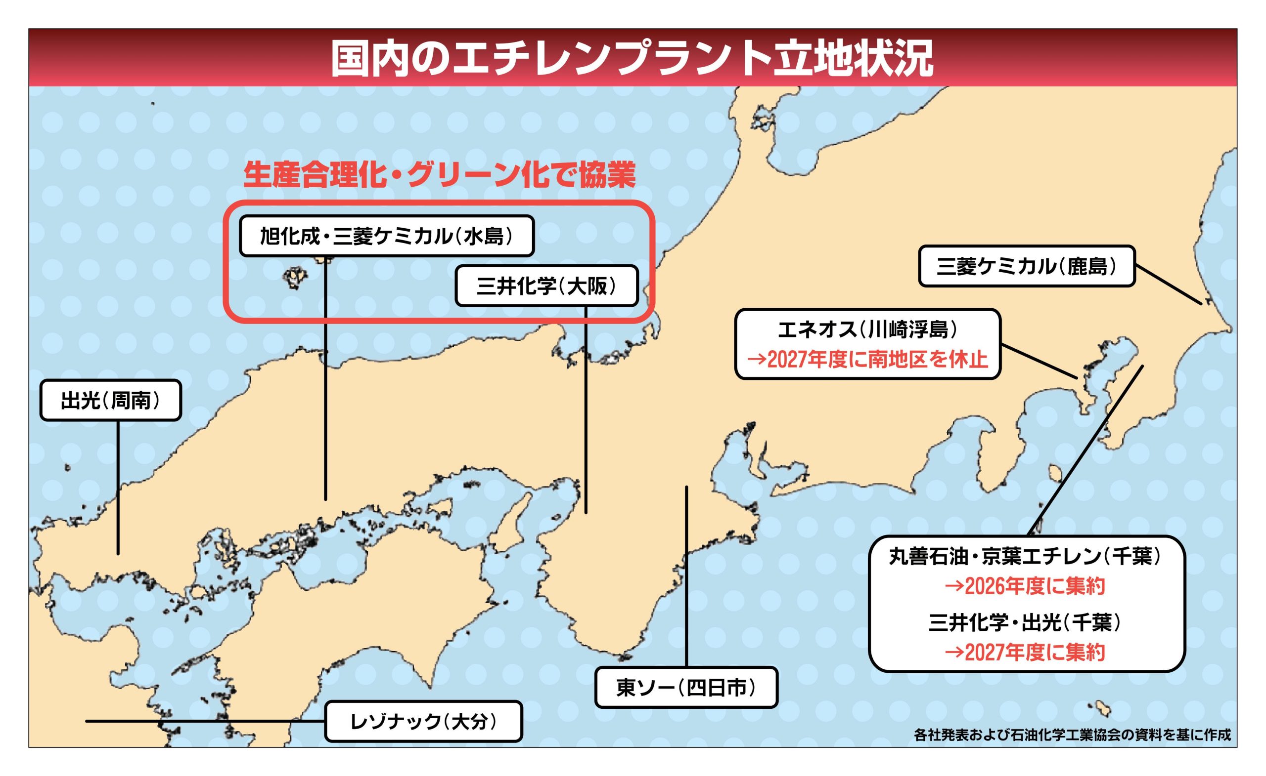 旭化成・三井化学・三菱ケミカル、エチレンの国内製造体制再編へ事業組合を設立