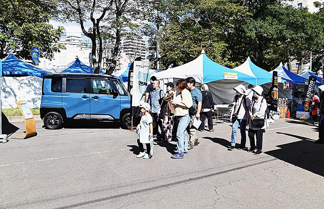 【函館】函館中央三菱(小笠原正吾社長)は、9月27、28日に函館市中心部で開かれた道南最大のグルメイベント「グルメワンダーパーク函館」に出展し、新型「デリカミニ」を来場者に披露した。 道内外から人気飲食店などが出展するイベントで、2日間で...