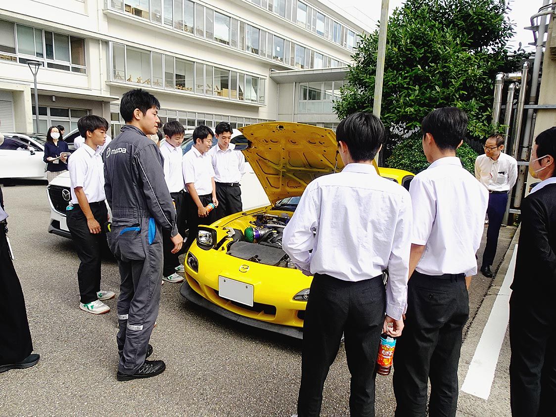 富山自販、卒業生の自動車整備士らが高校生と懇談会