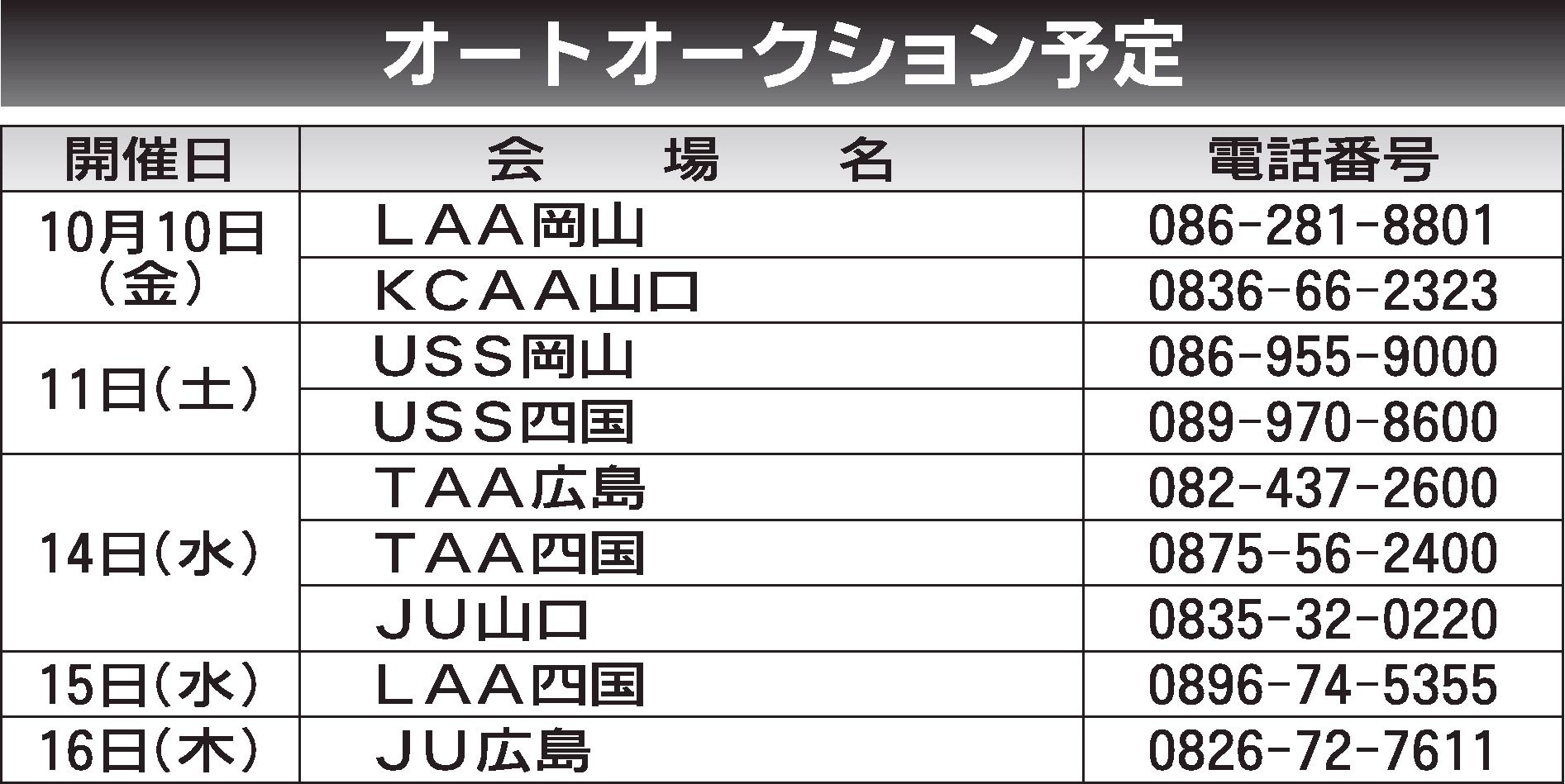 〈オートオークション予定〉中・四国地区 2025/10/10~16
